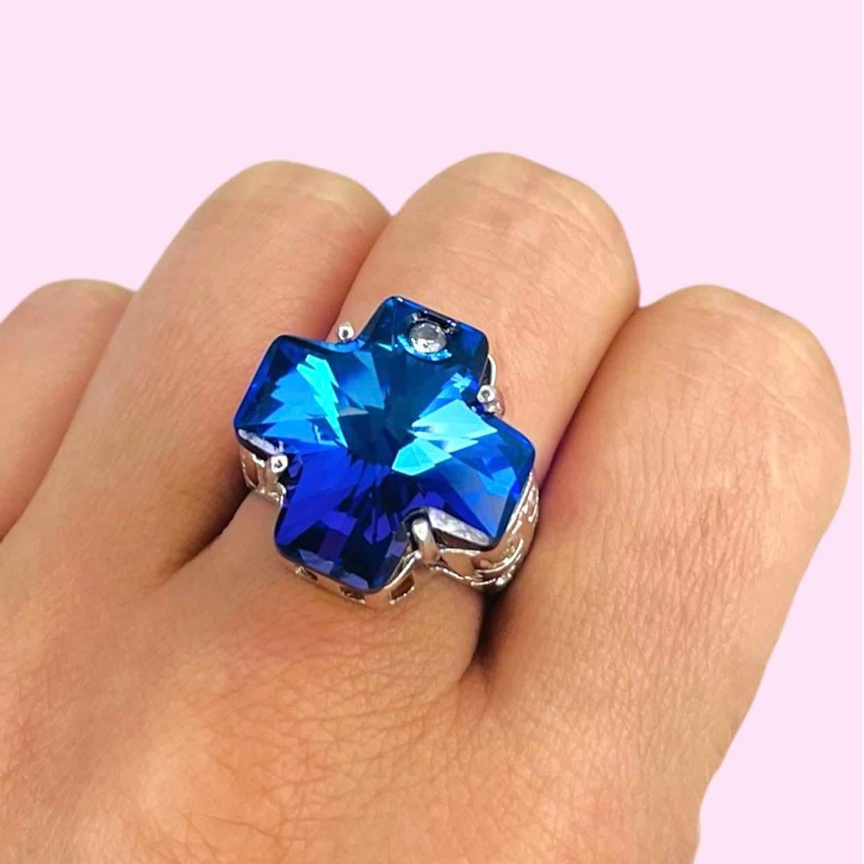 Anillo Cruz Con Swarovski Amatista Plata 925