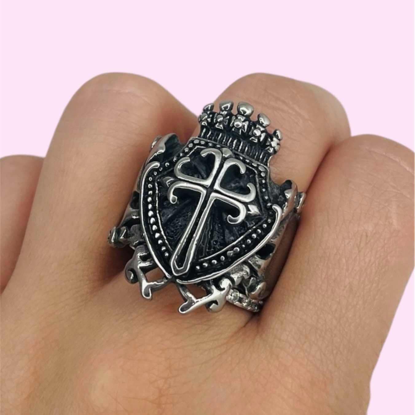 Anillo cruz estandarte rey de Acero Quirurgico