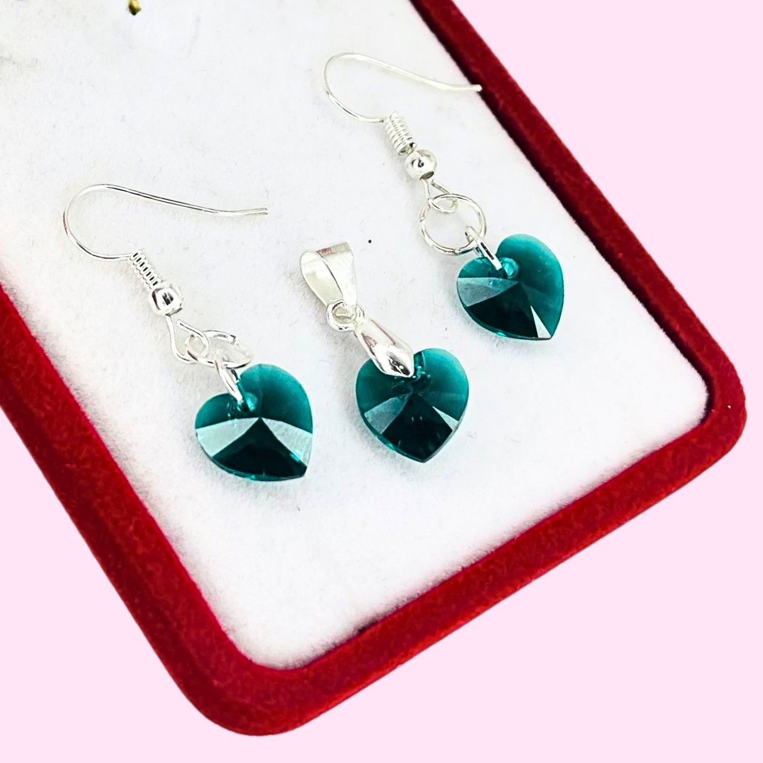 Conjunto dije y aros Swarowski Corazon Esmeralda 10mm Plata 925