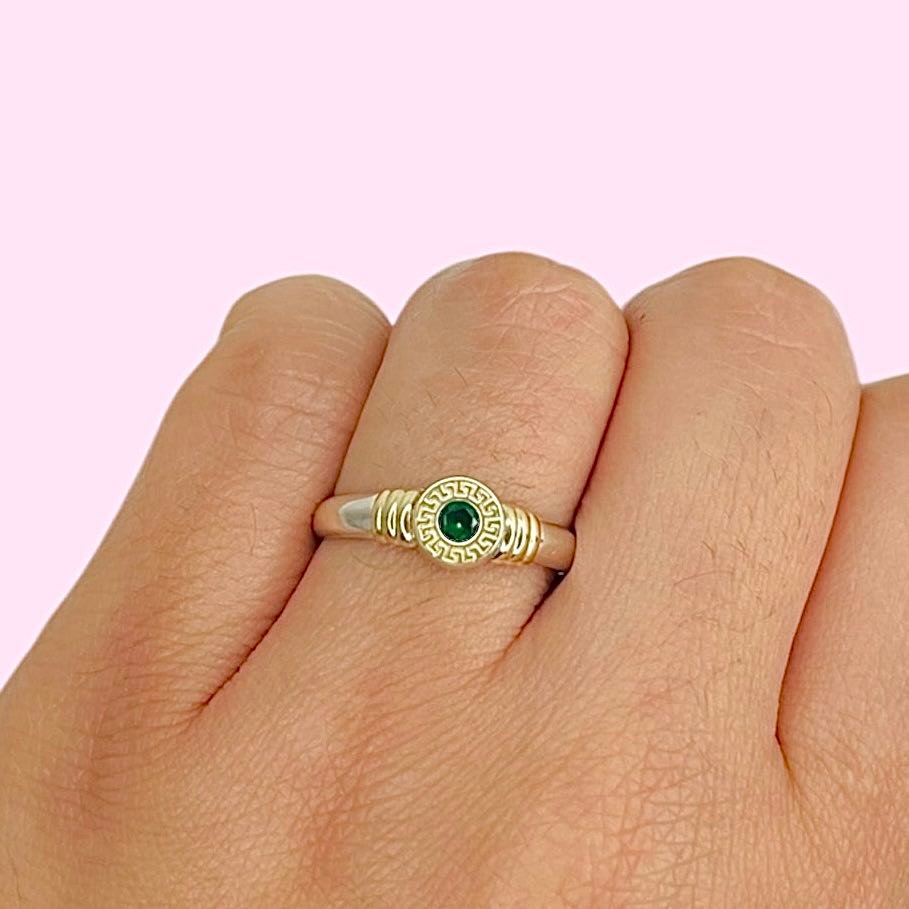Artículo: AP 124-9Anillo guarda griega mini con cubic Verde Plata y Oro