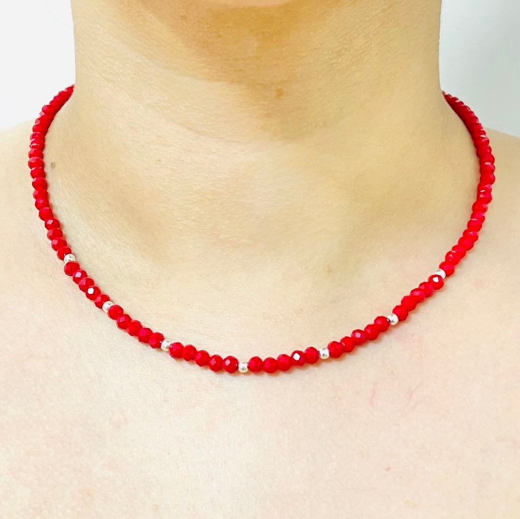 Cadena de Cristales y Bolitas Plata 925