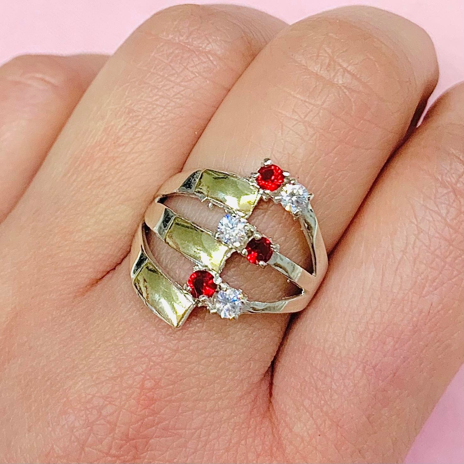 Anillo entrelazo con cubic Rubi y Blanco
