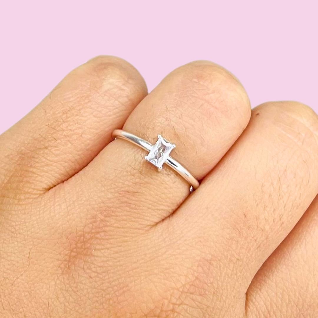 anillo Compromiso Cubic Rectangular Blanco Plata Italiana