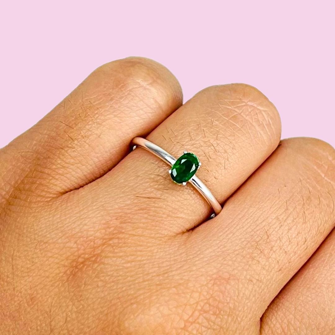 Anillo Compromiso Cubic Ovalado Esmeralda Plata Italiana