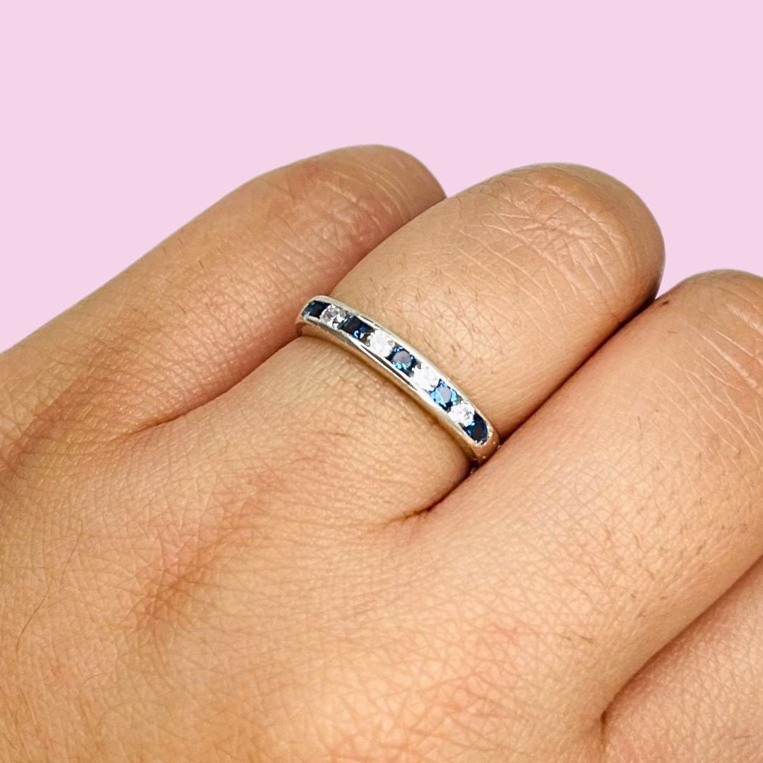 Anillo medio Sinfin Safiro y blanco de plata 925
