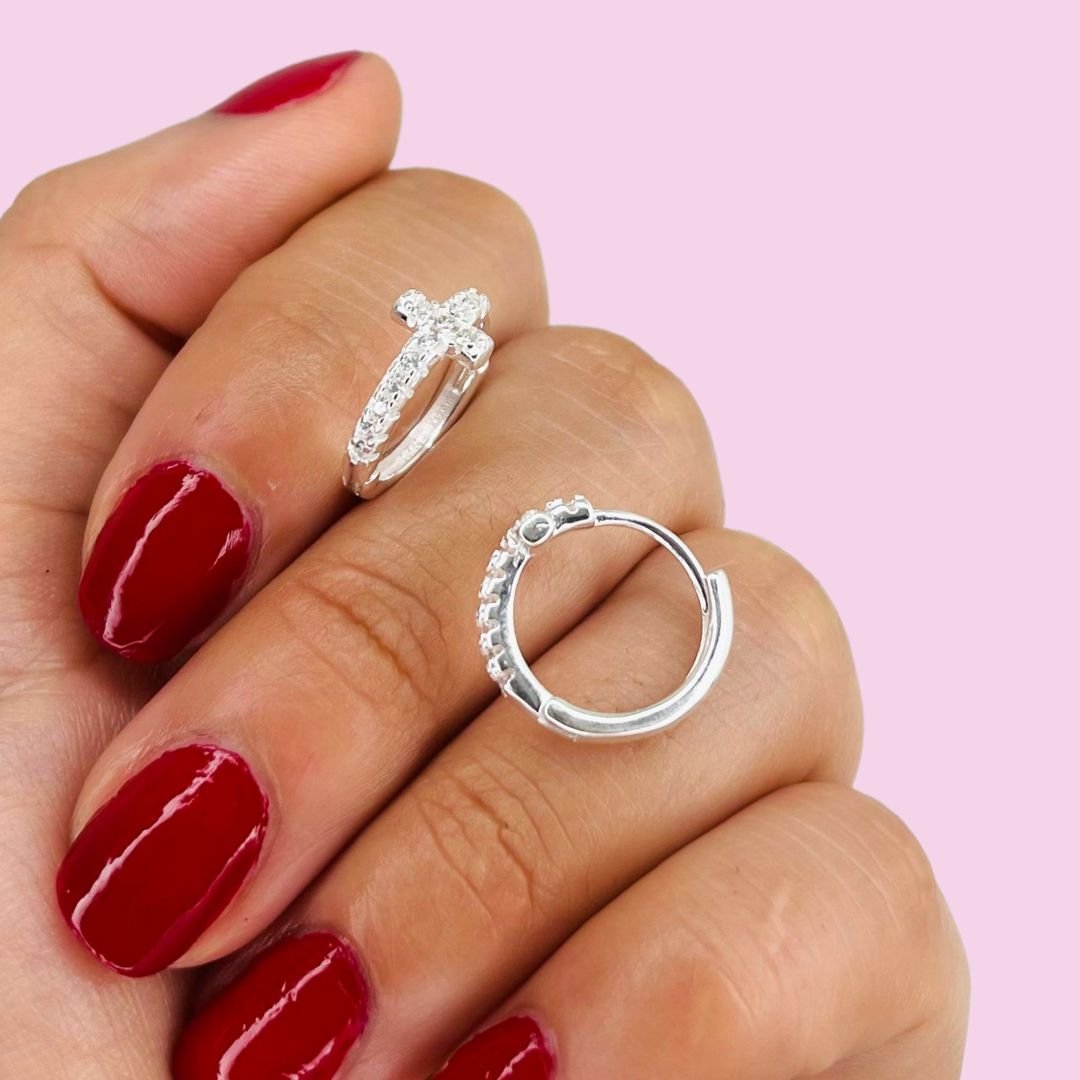 Artículo: AR 387-83Aros Cruz cubic blanco Plata 925