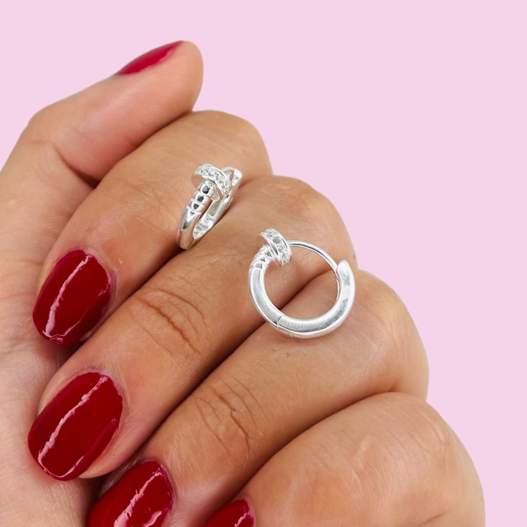 Artículo: AR 387-86Aros con disco y micropave blanco Plata 925