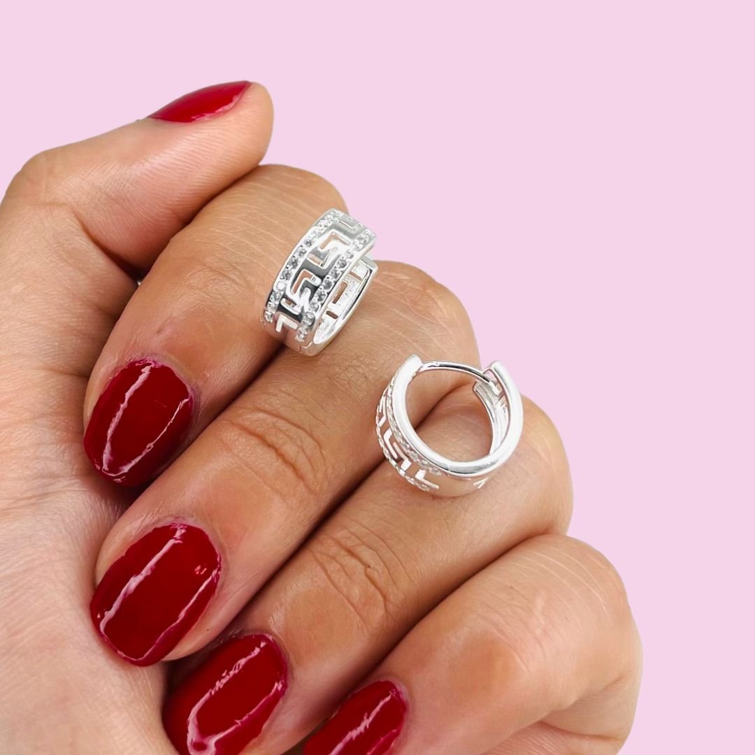 Aros Huggies guarda griega y micropave blanco Plata 925
