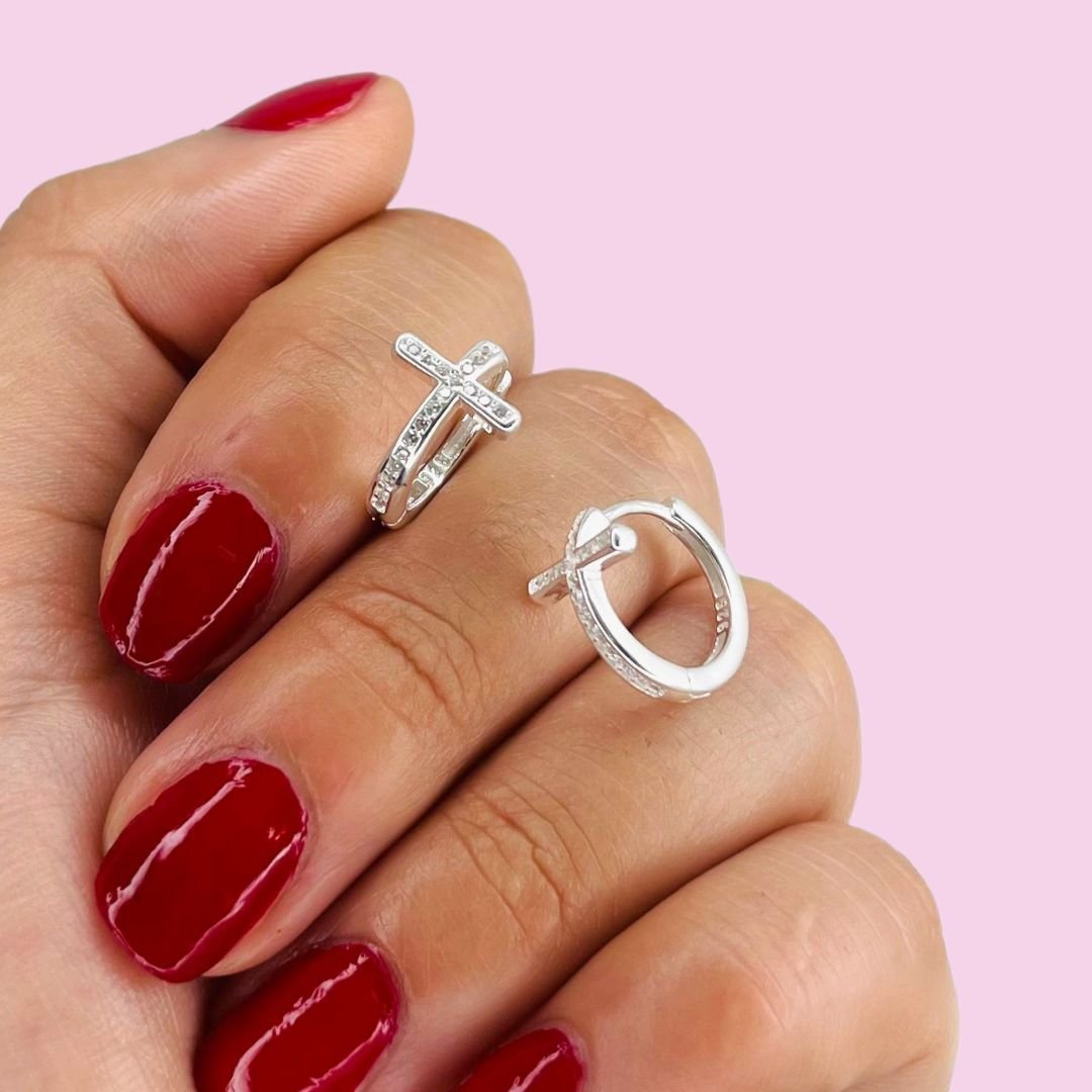 Aros Huggies Cruz Religiosa de Micropave Plata 925