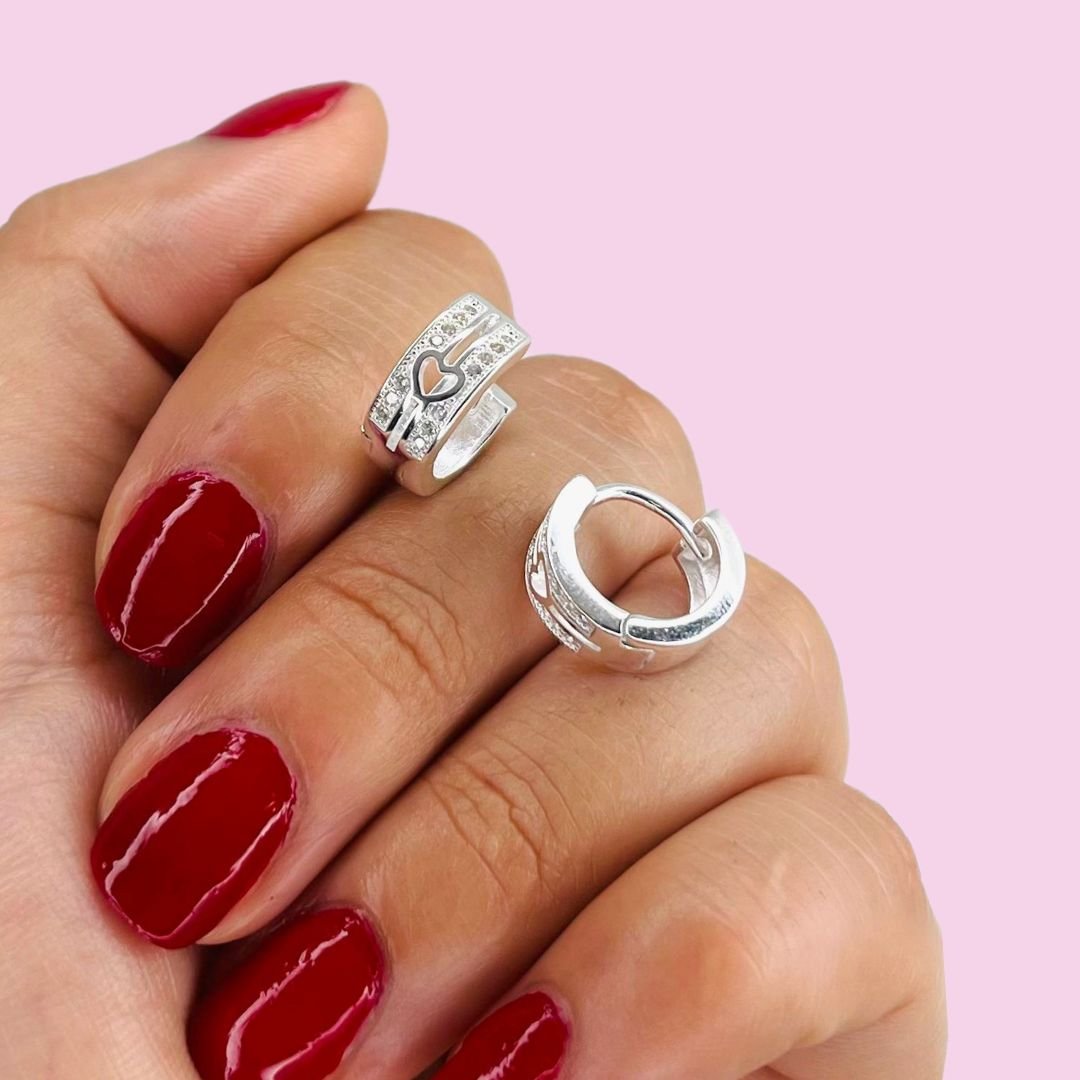Aros Huggies Silueta corazon y micropave blanco Plata 925