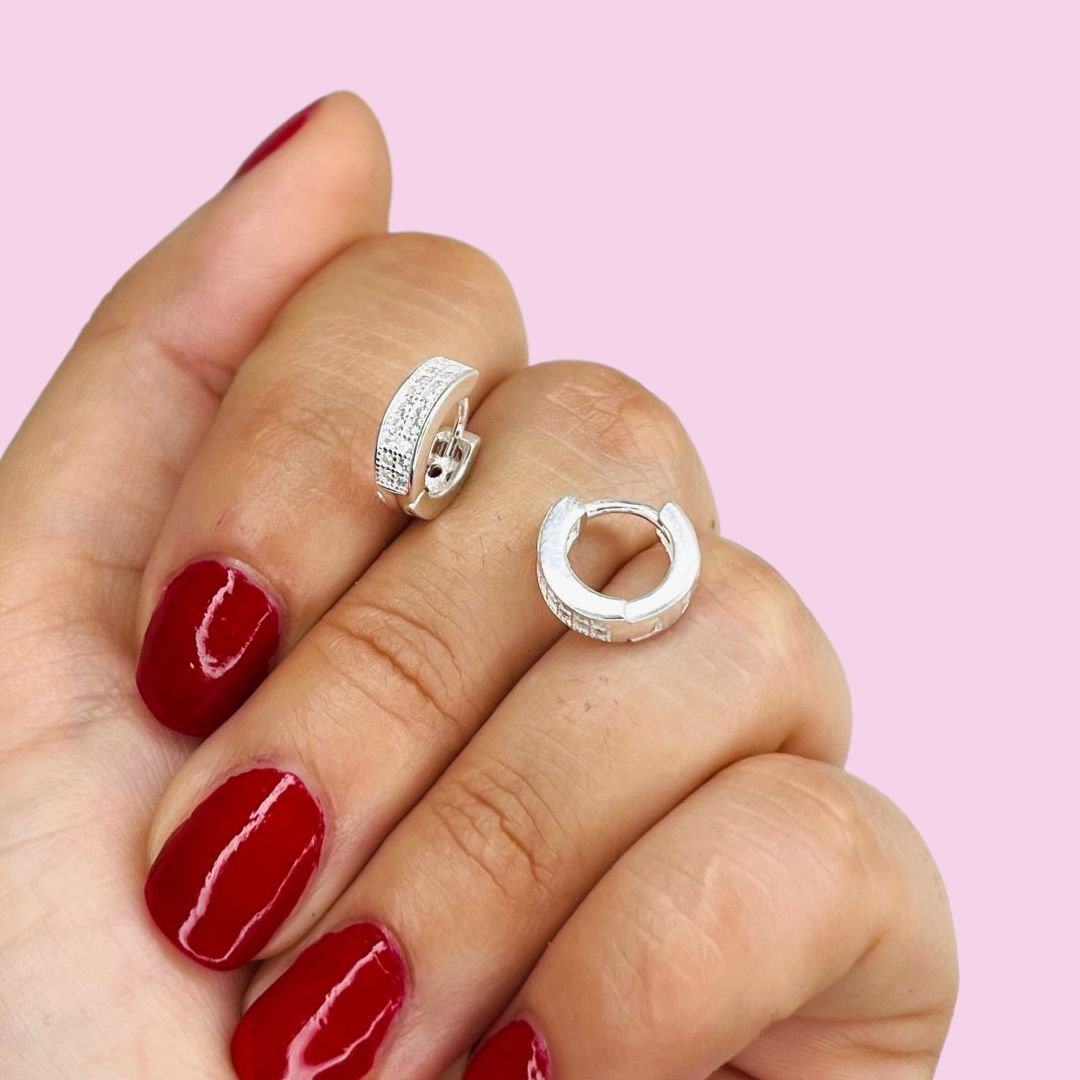 Artículo: AR 387-97Aros Huggies con micropave blanco Plata 925