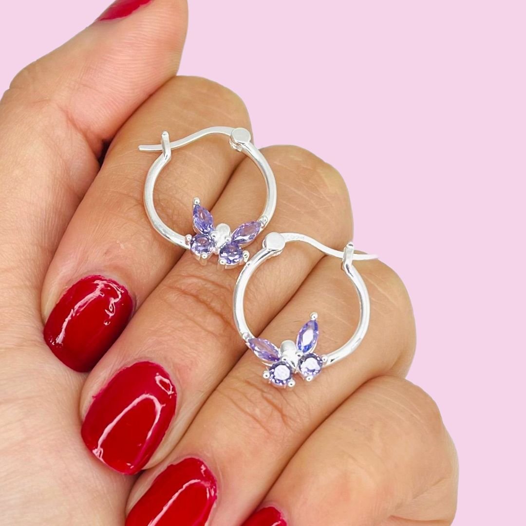 Aros Argollas Mariposa cubic Violeta Plata Italiana