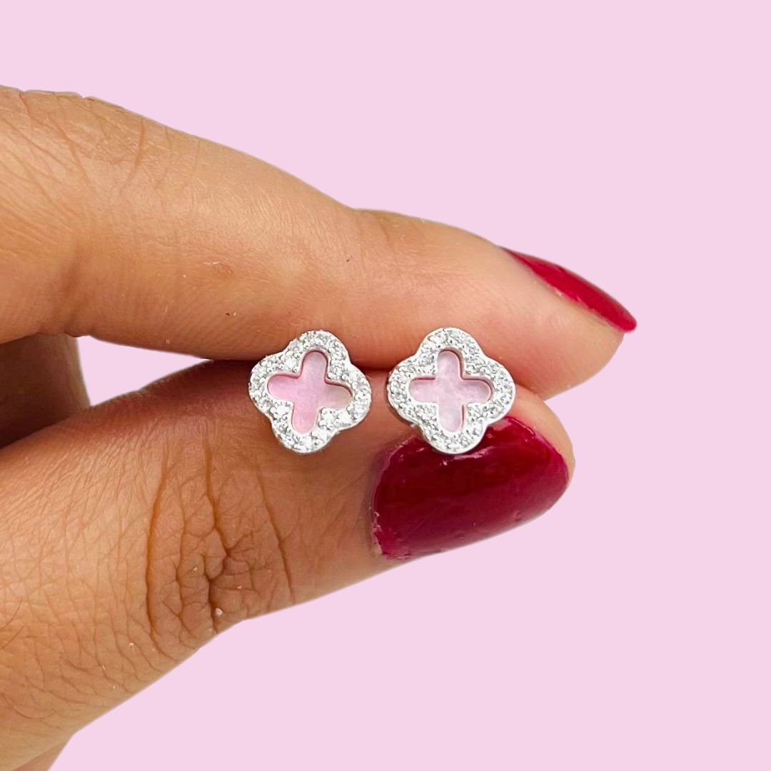 Artículo: AR 577Aros Van Cleef Rosa nacar y micropave Plata Italiana