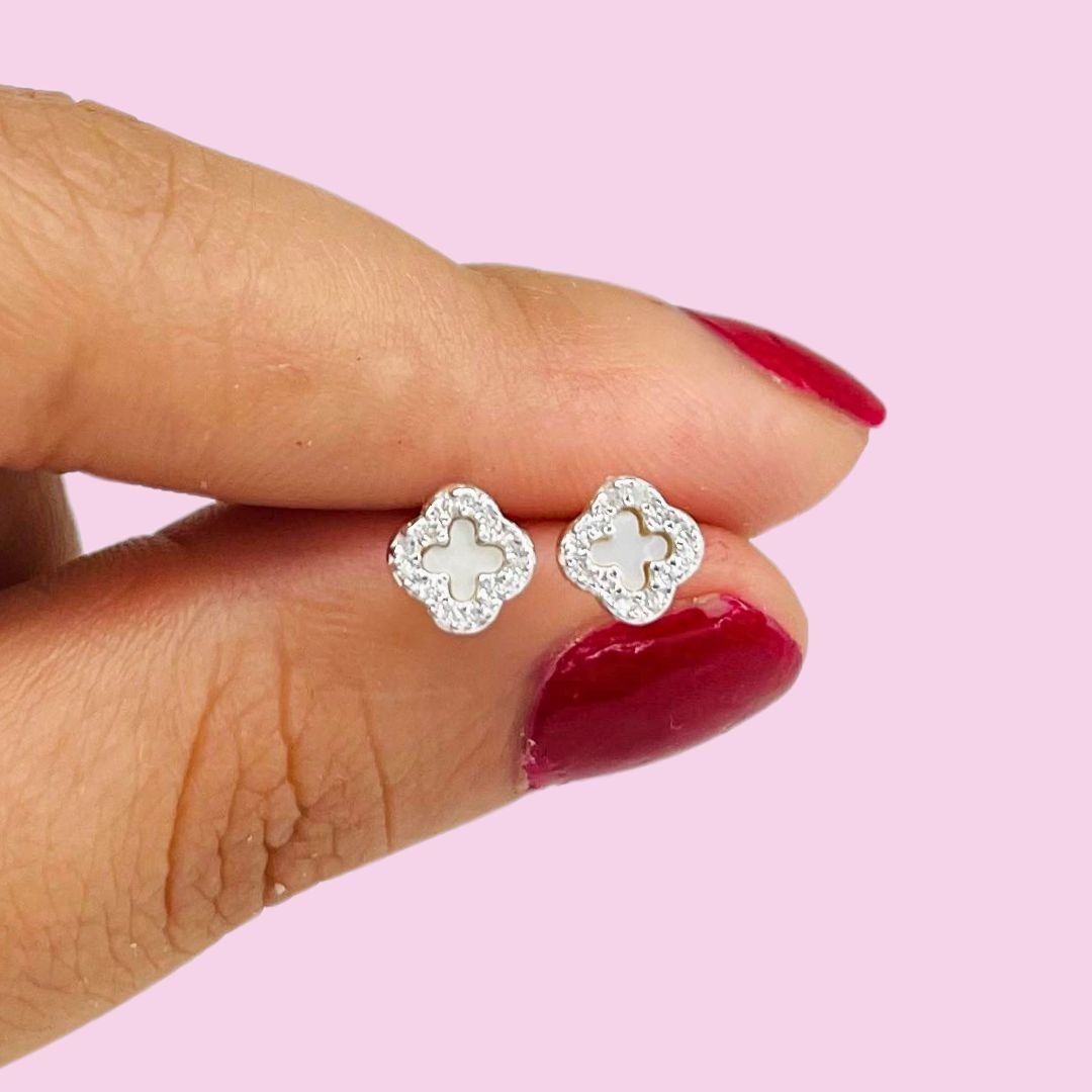 Aros van cleef Blanco nacar y micropave 5mm Plata Italiana