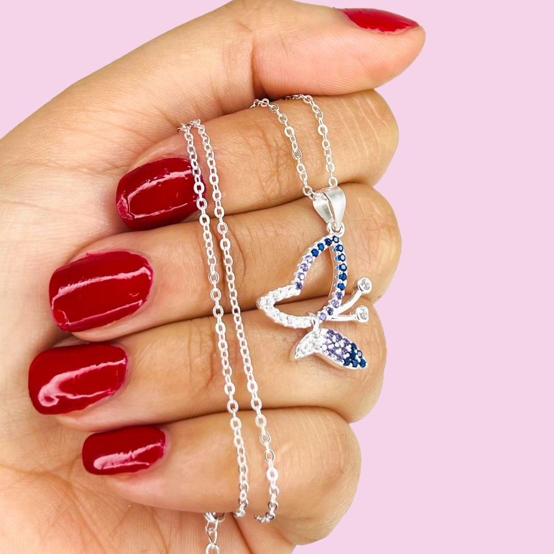 Conjunto cadena rolito dije Mariposa Tricolor Plata Italiana