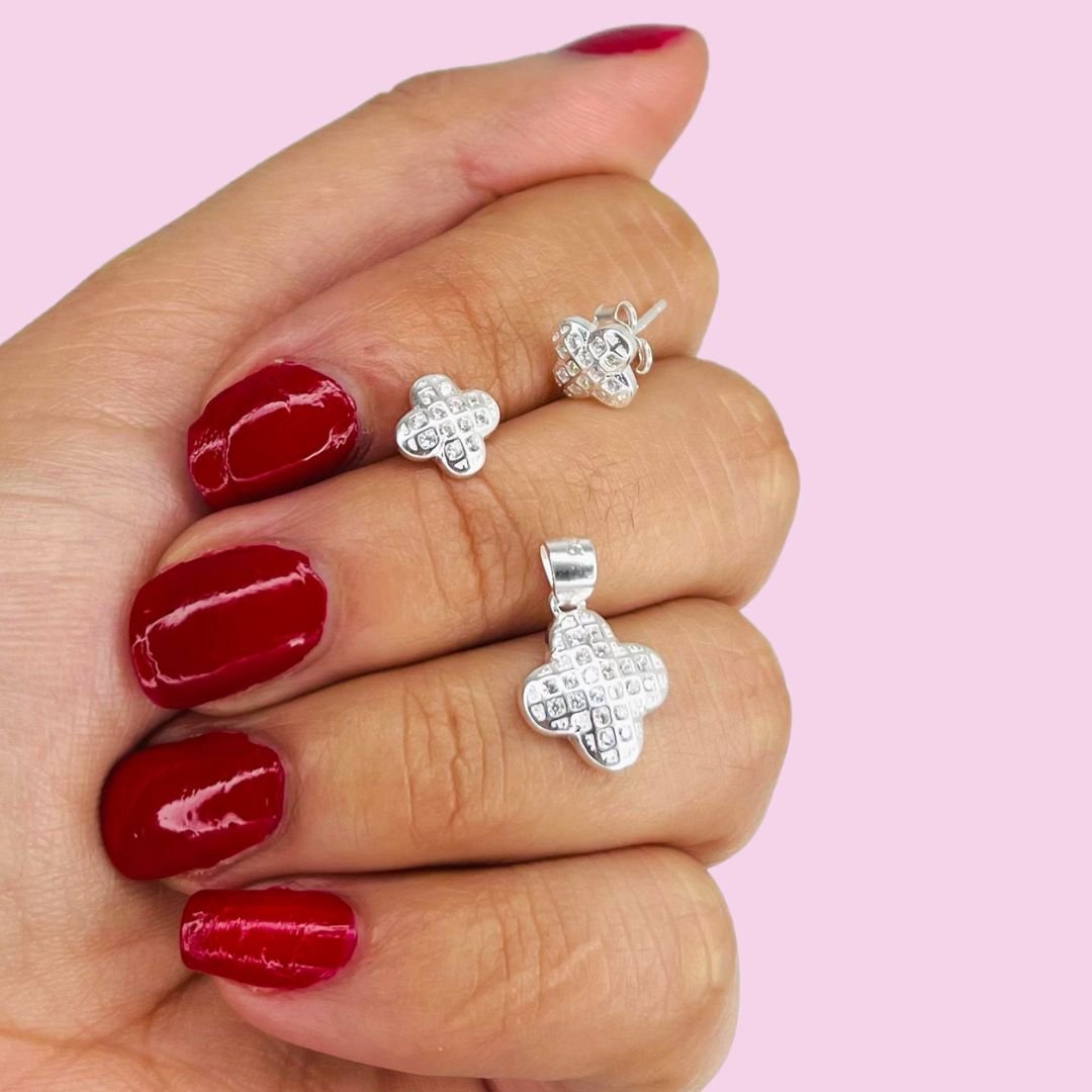 Artículo: KIT 315Conjunto dije y aros Van cleef Micropave Plata Italiana