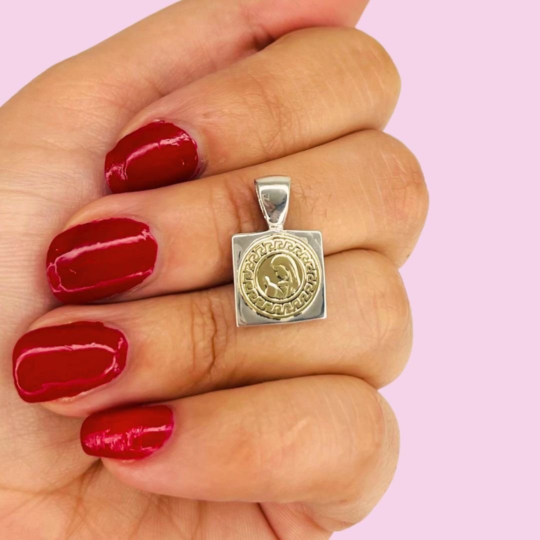 Dije Virgen Niña Guarda griega Plata 925 y Oro