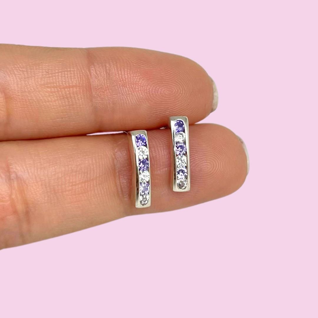 Aros Medio Sinfin Amatista y Blanco Plata