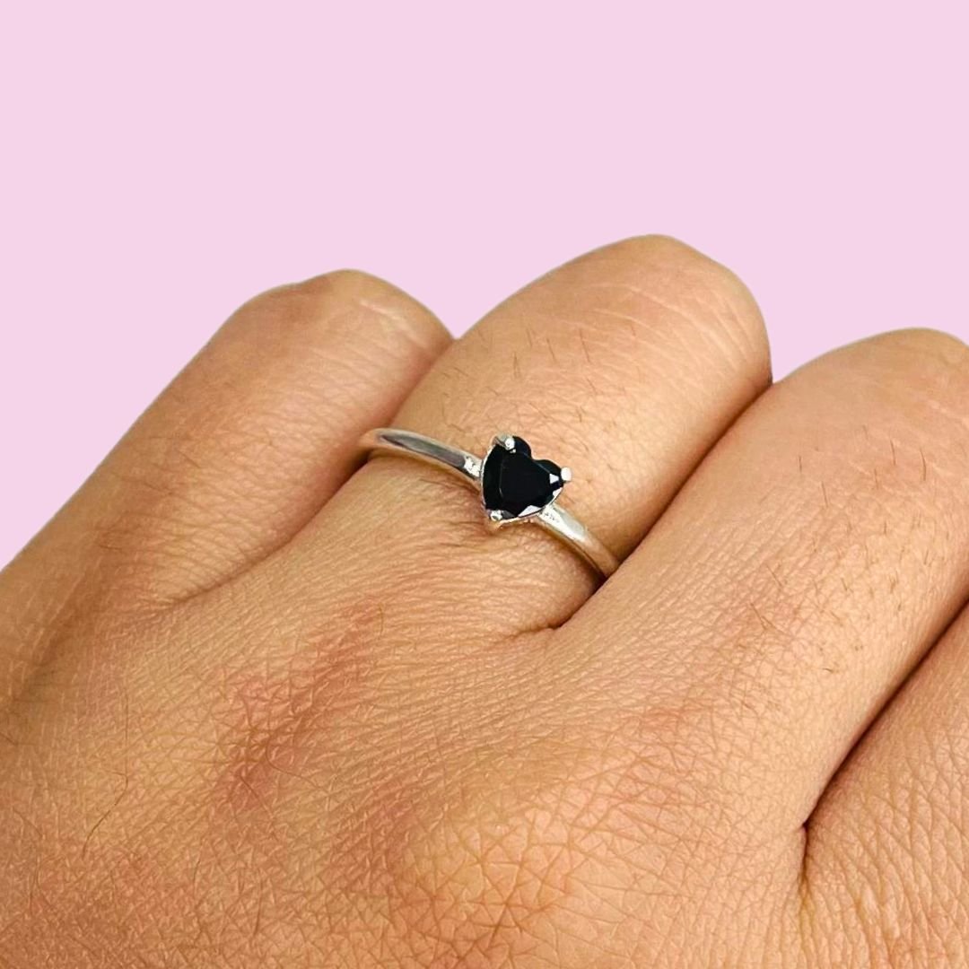 Anillo Piedra Corazon Solitario Negro Plata 925