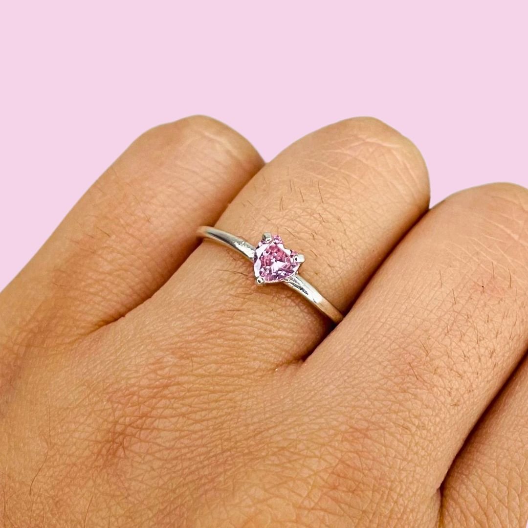 Anillo Piedra Corazon Solitario Rosa Plata 925