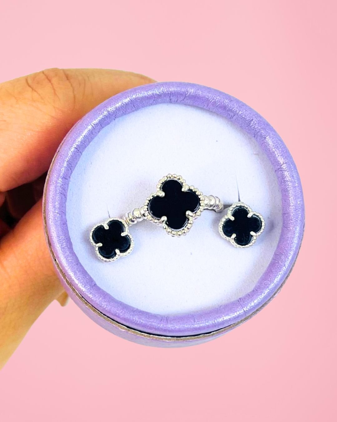 Conjunto Anillo y Aros Van Cleef Negro Plata 925