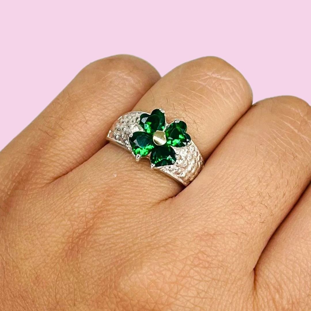 Artículo: AP 131-5Anillo Trebol Esmeralda Plata y Oro