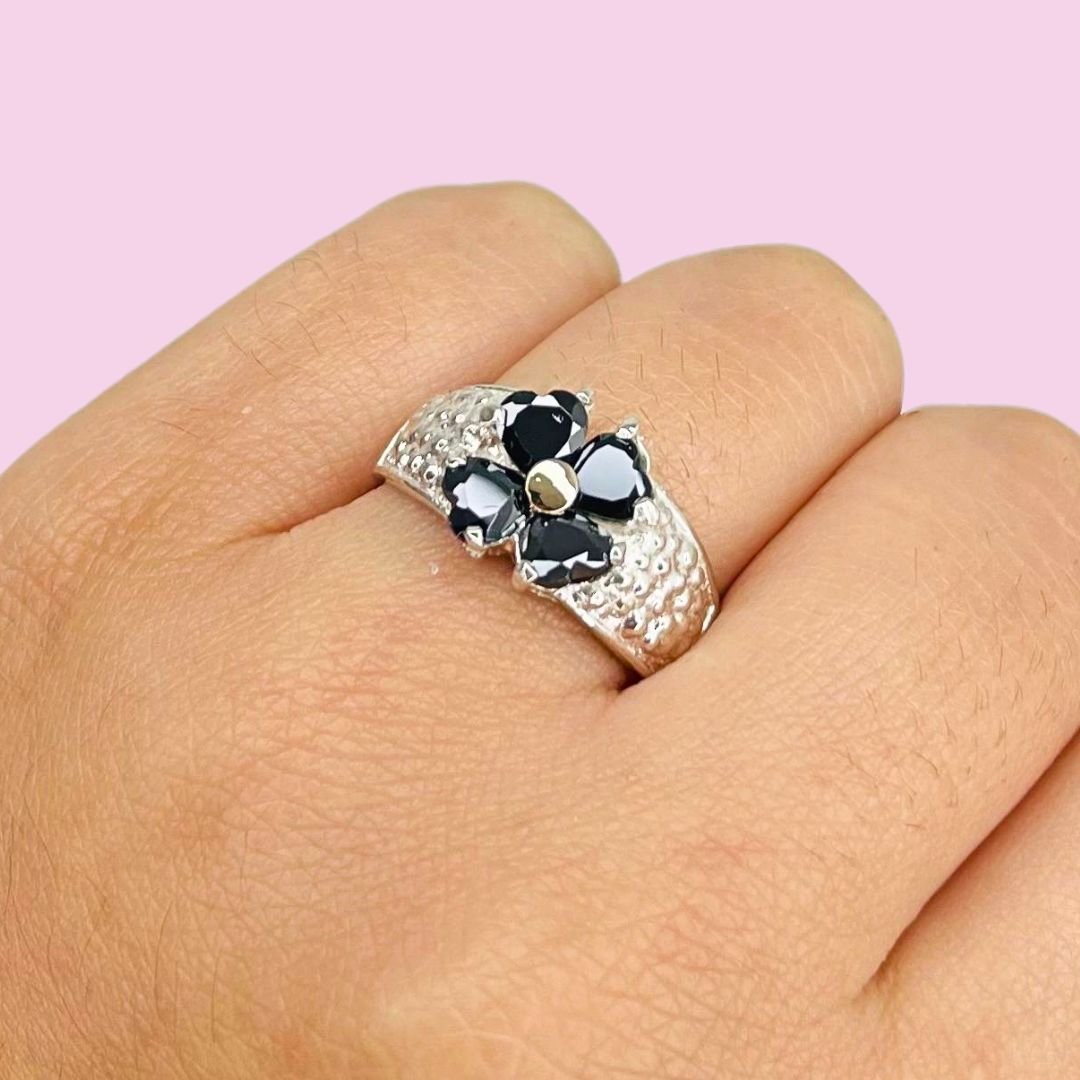 Artículo: AP 131-9Anillo Trebol Negro Plata y Oro