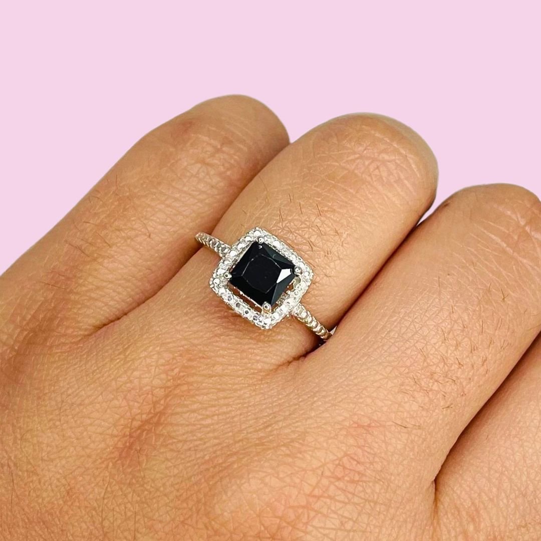 Anillo Compromiso Piedra Cuadrada Negro Plata 925
