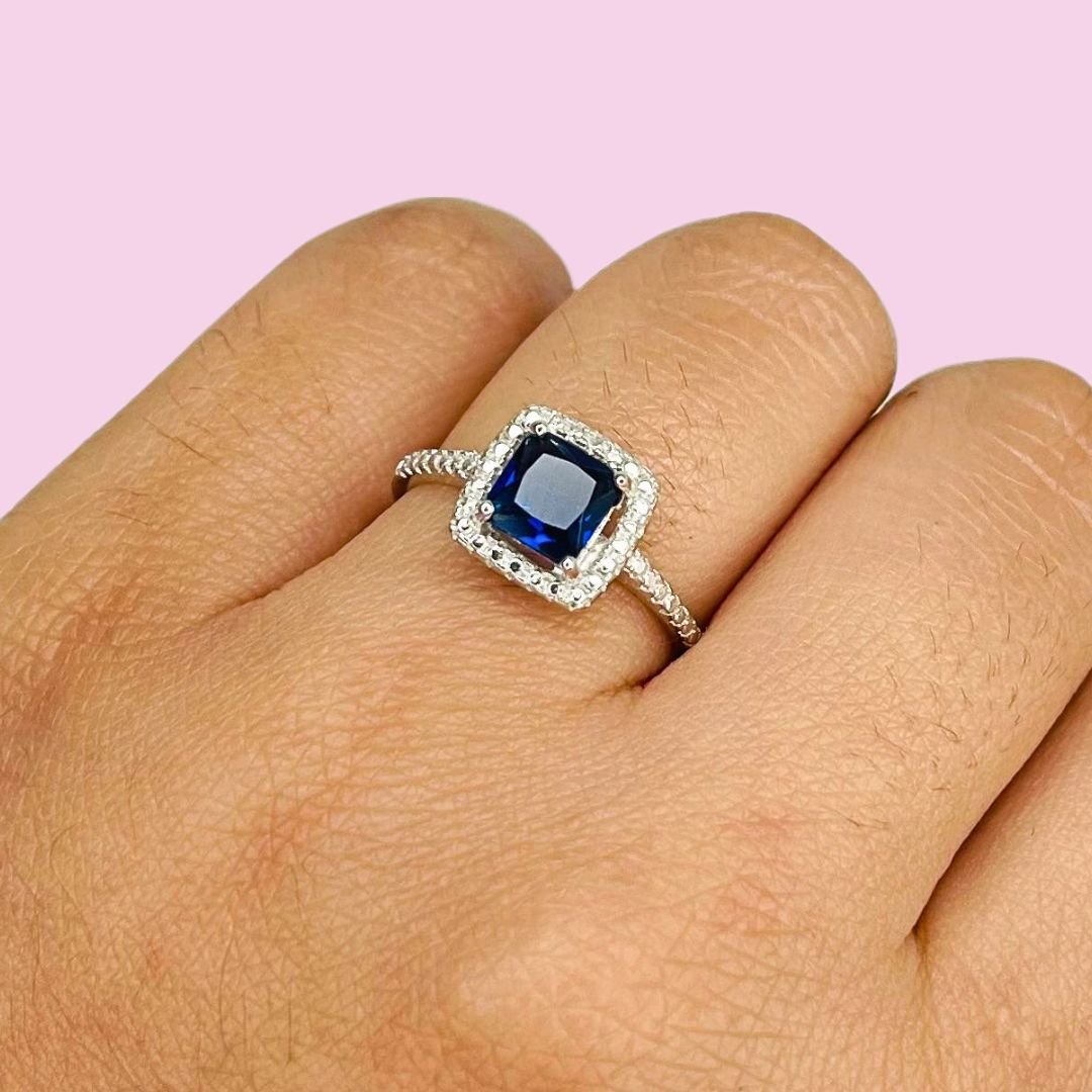 Anillo Compromiso Piedra Cuadrada Safiro Plata 925