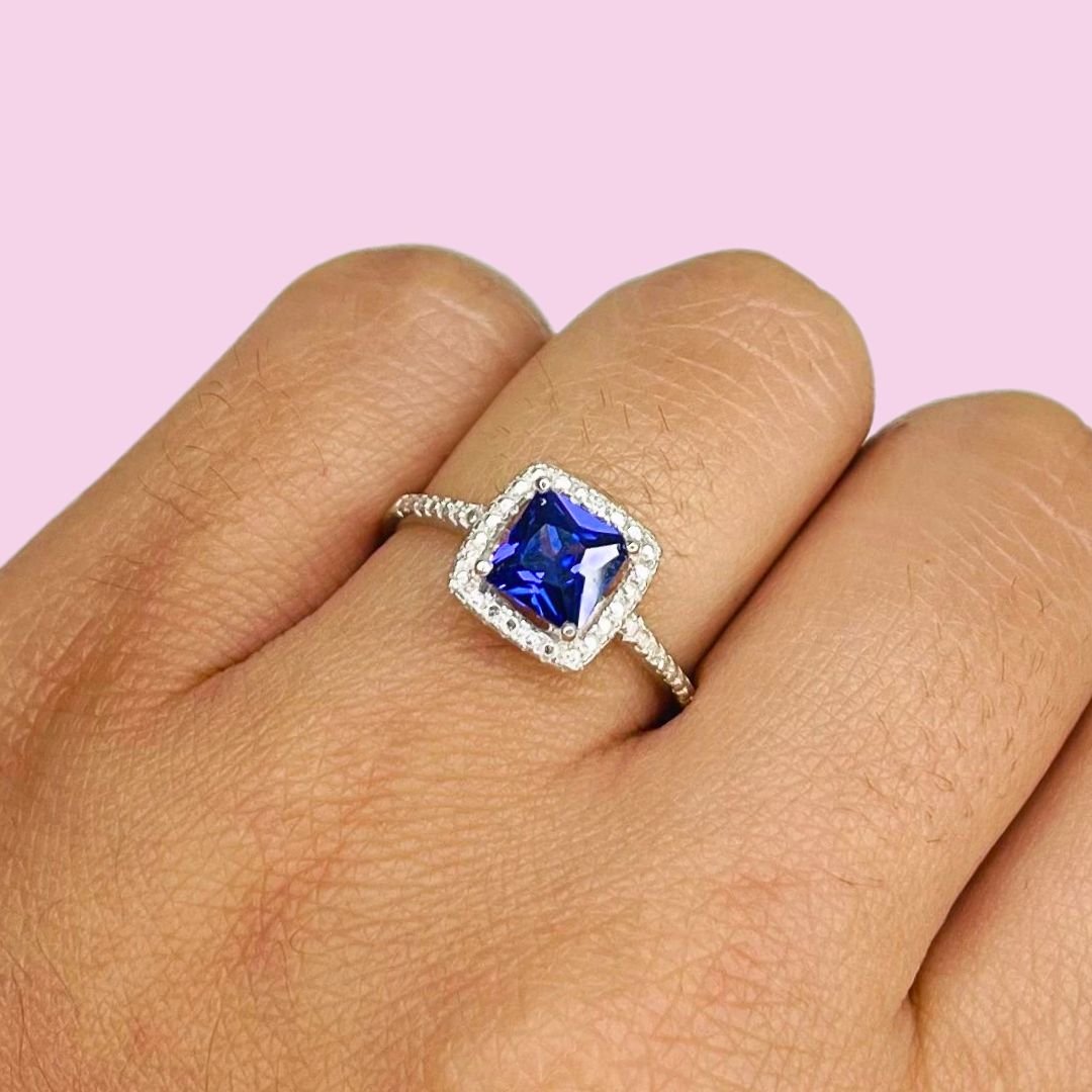 Anillo Compromiso Piedra Cuadrada Amatista Plata 925