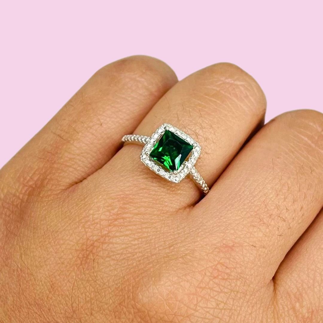 Anillo Compromiso Piedra Cuadrada Esmeralda Plata 925