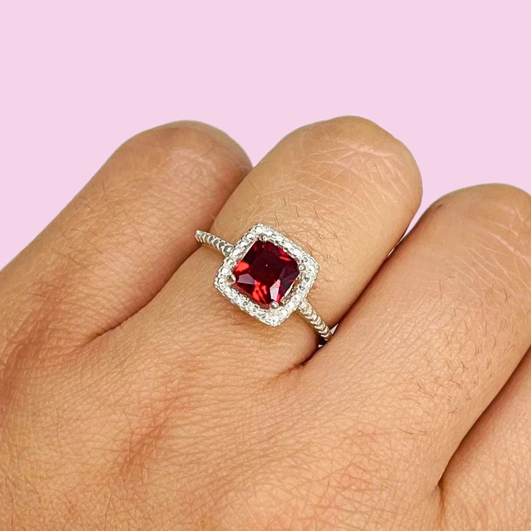 Anillo Compromiso Piedra Cuadrada Rubi Plata 925