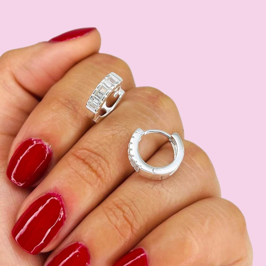 Aros Huggies baguette blanco Plata Italiana