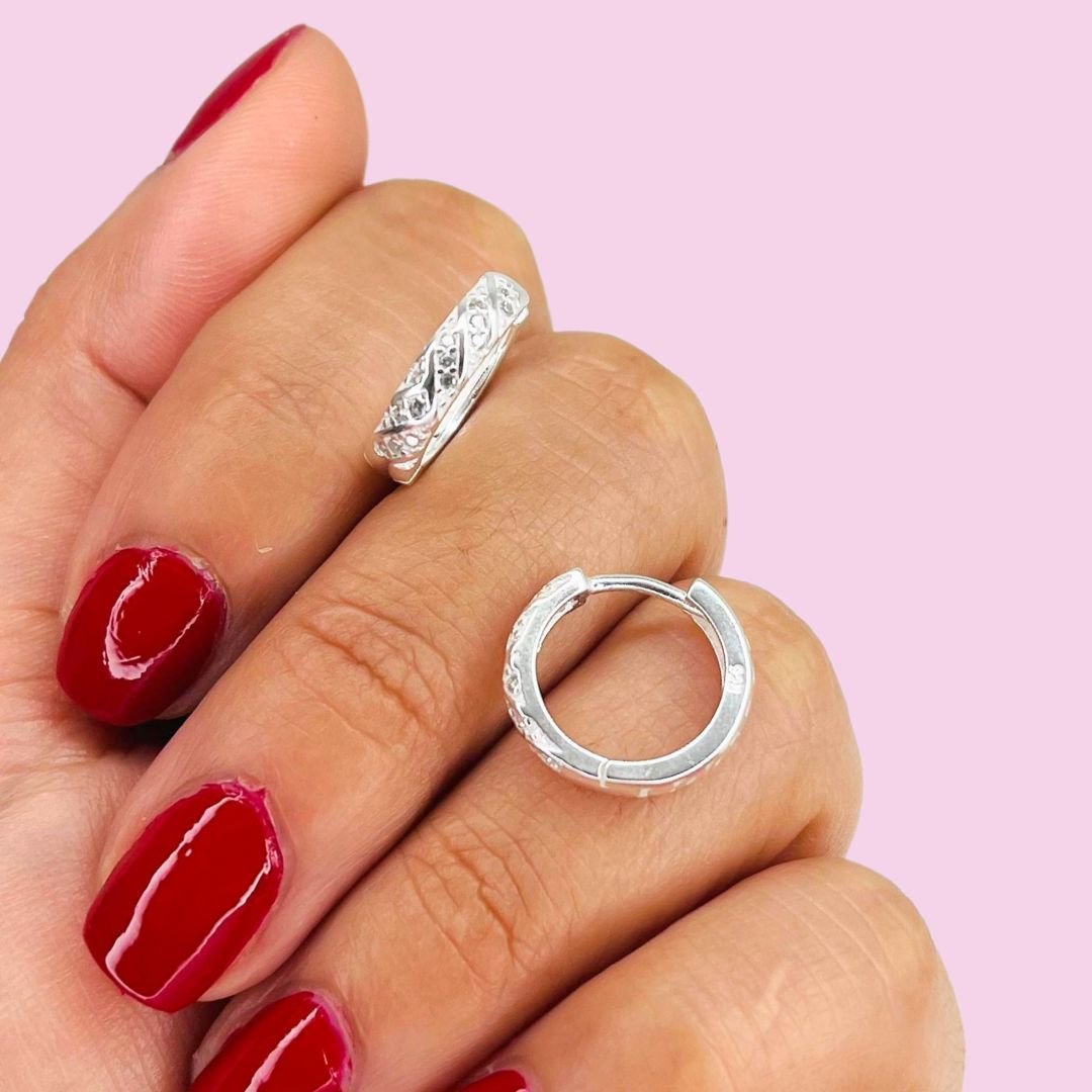 Aros Huggies Rayado Micropave Plata Italiana