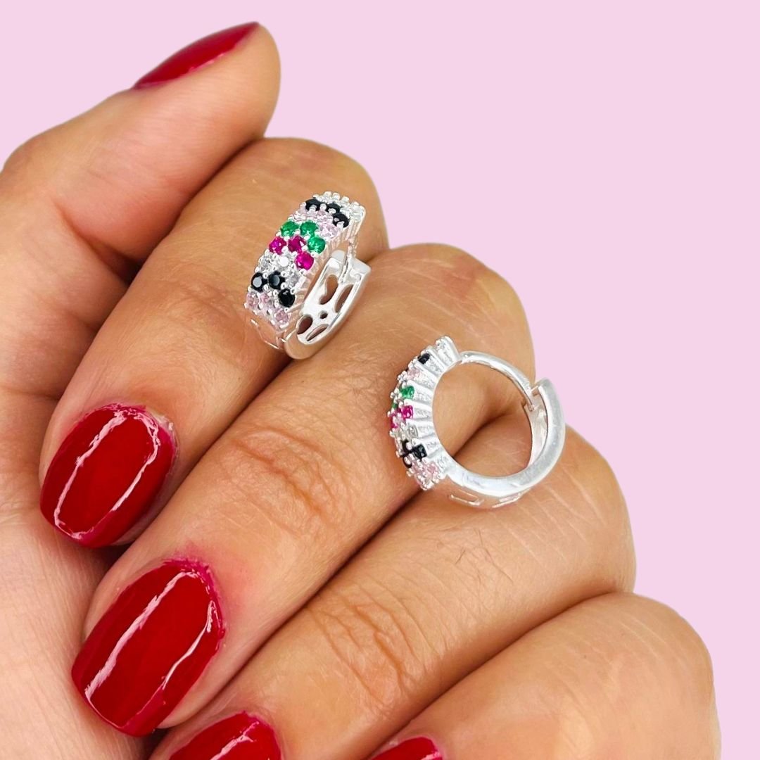 Aros Huggies Cubic Multicolor Plata Italiana