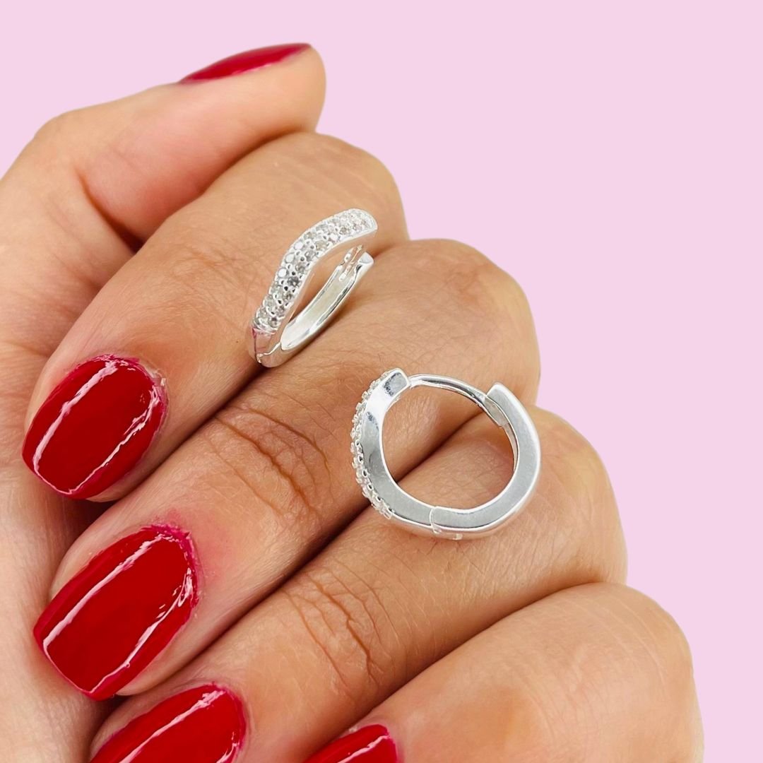 Artículo: AR 387-120Aros Huggies Onda micropave Blanco Plata Italiana