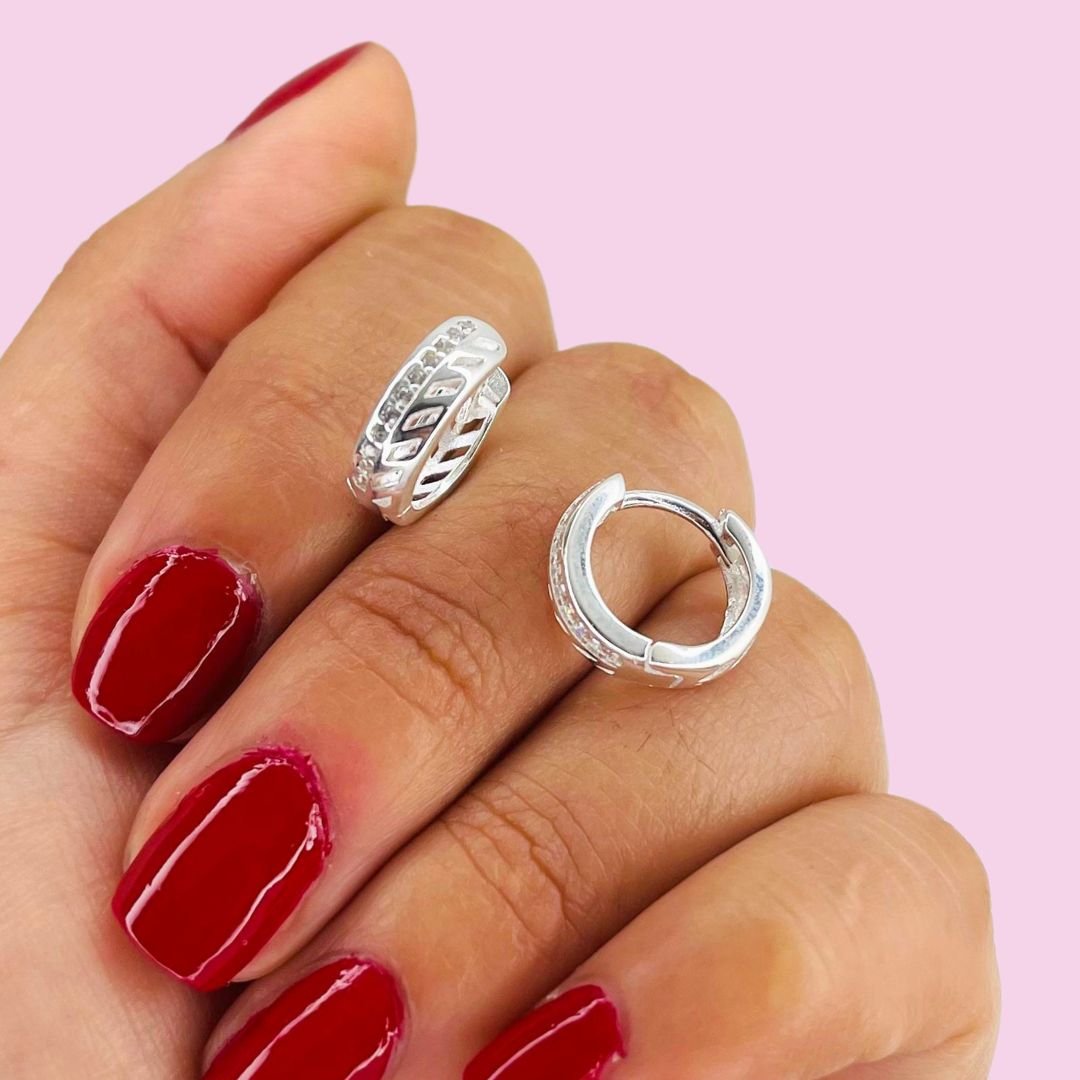 Artículo: AR 387-127Aros Huggies Medio Sinfin Blanco Plata Italiana