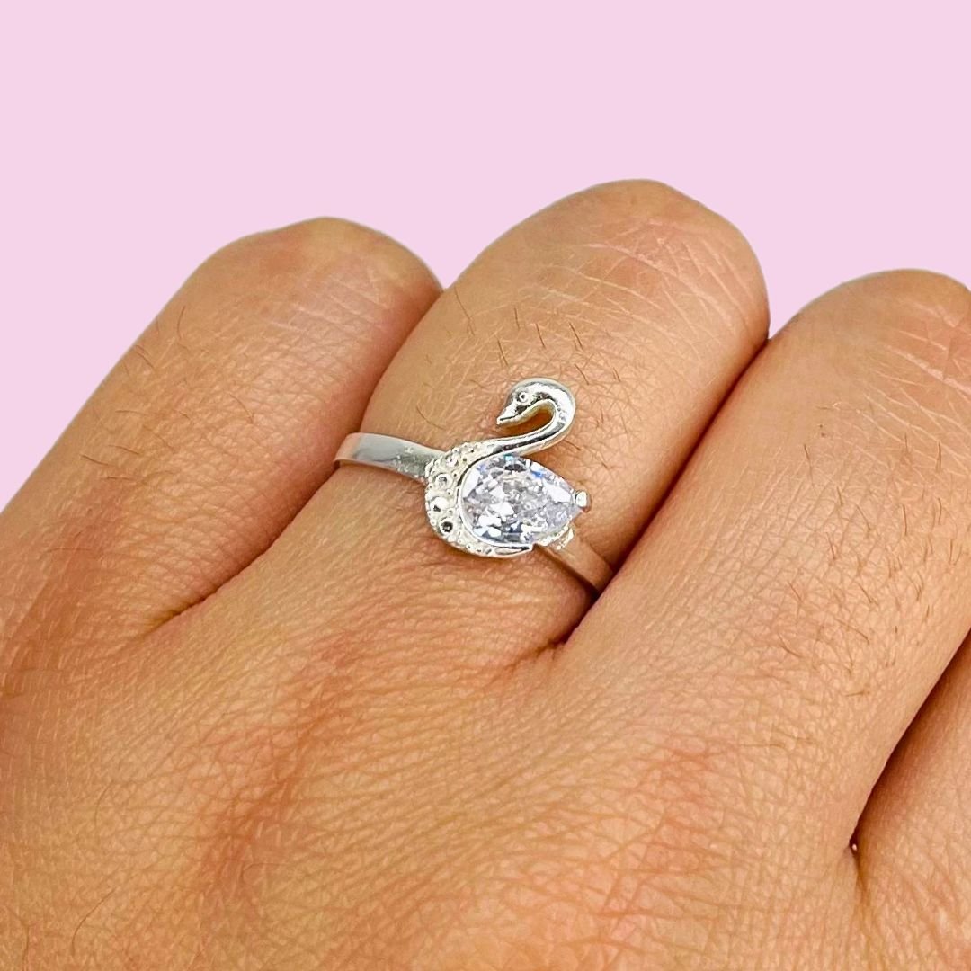 Anillo Cisne con Piedra Blanco Plata 925