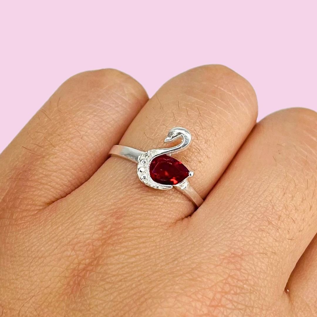Anillo Cisne con Piedra Rubi Plata 925
