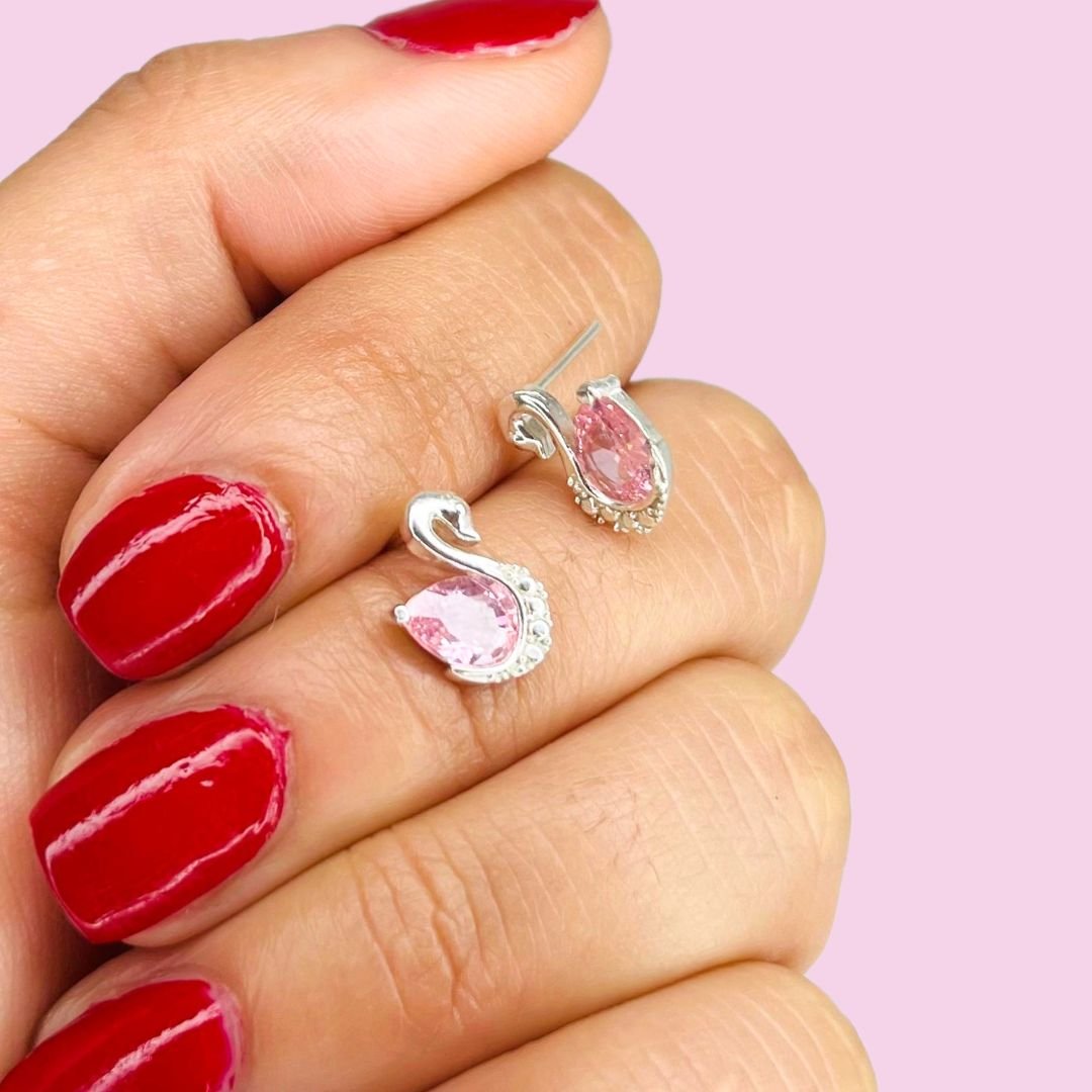 Artículo: AR 592-6Aros Cisne con piedra Rosa Plata 925