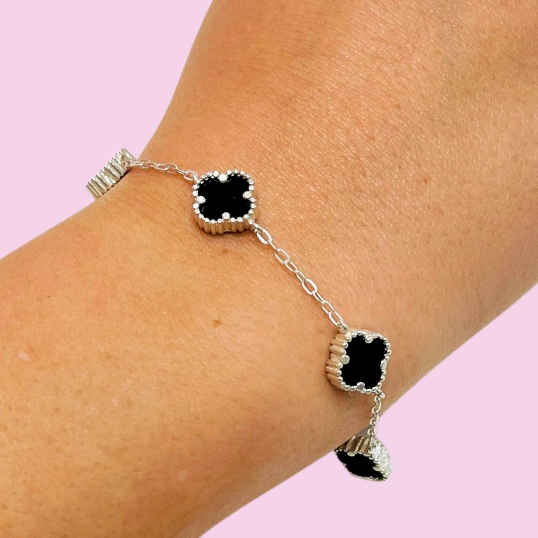 Pulsera 5 trebol Van Cleef Negro Plata 925