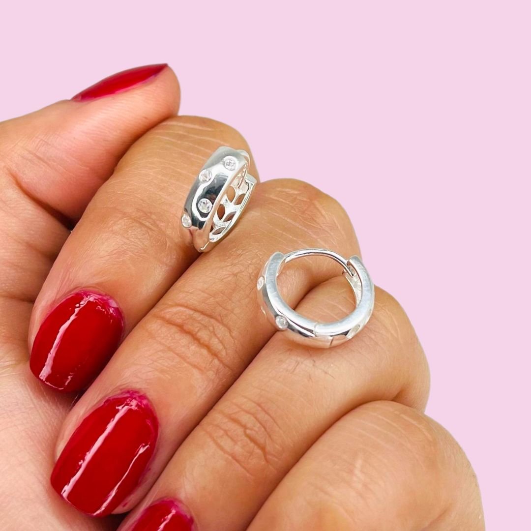 Aros Huggies burbuja cubic Blanco Plata Italiana