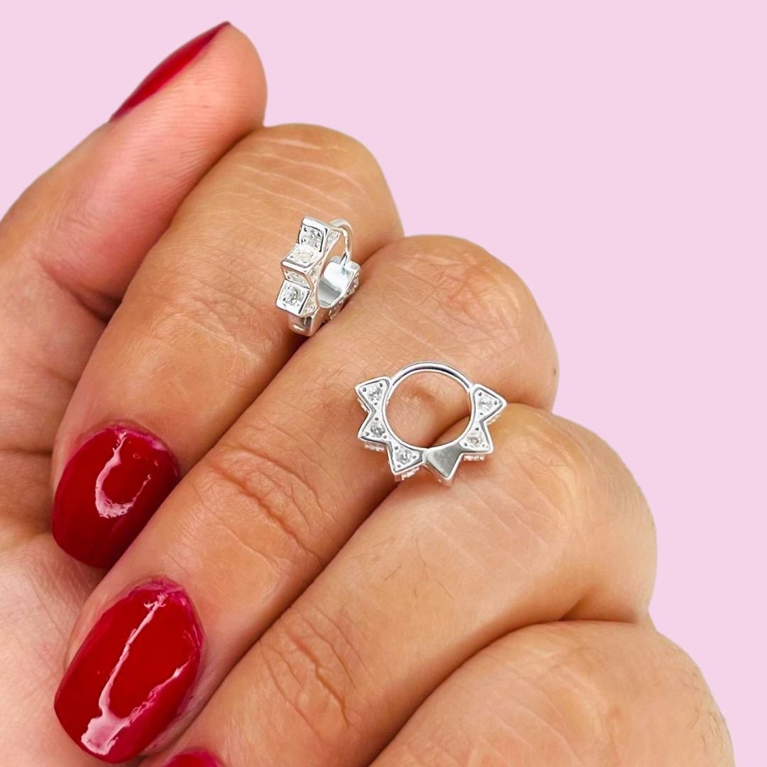 Aros Huggies Triangulos con cubic blanco Plata Italiana