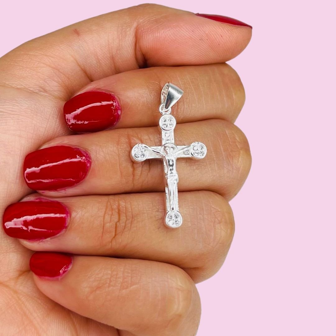 Dije Jesucristo cruz con micropave Plata Italiana