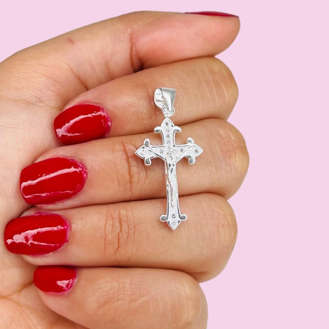 Dije Jesus en la cruz con micropave Plata Italiana