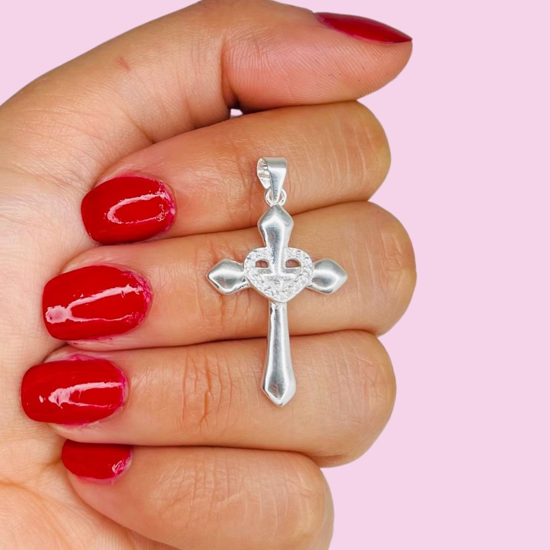 Dije Cruz con corazon Plata Italiana