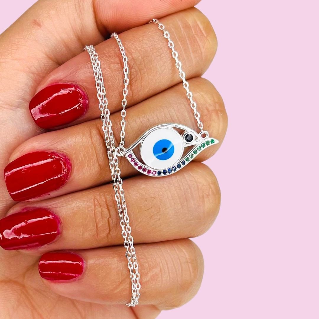 Conjunto Ojo de suerte multicolor Plata Italiana