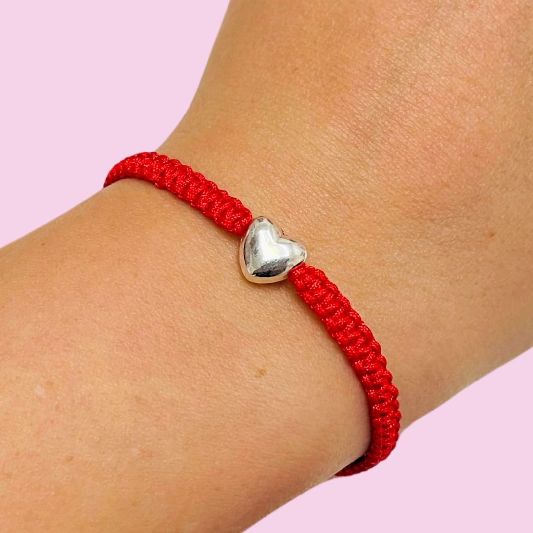 Material: Hilo Rojo, Bolitas laminadas y dije corazon en plata