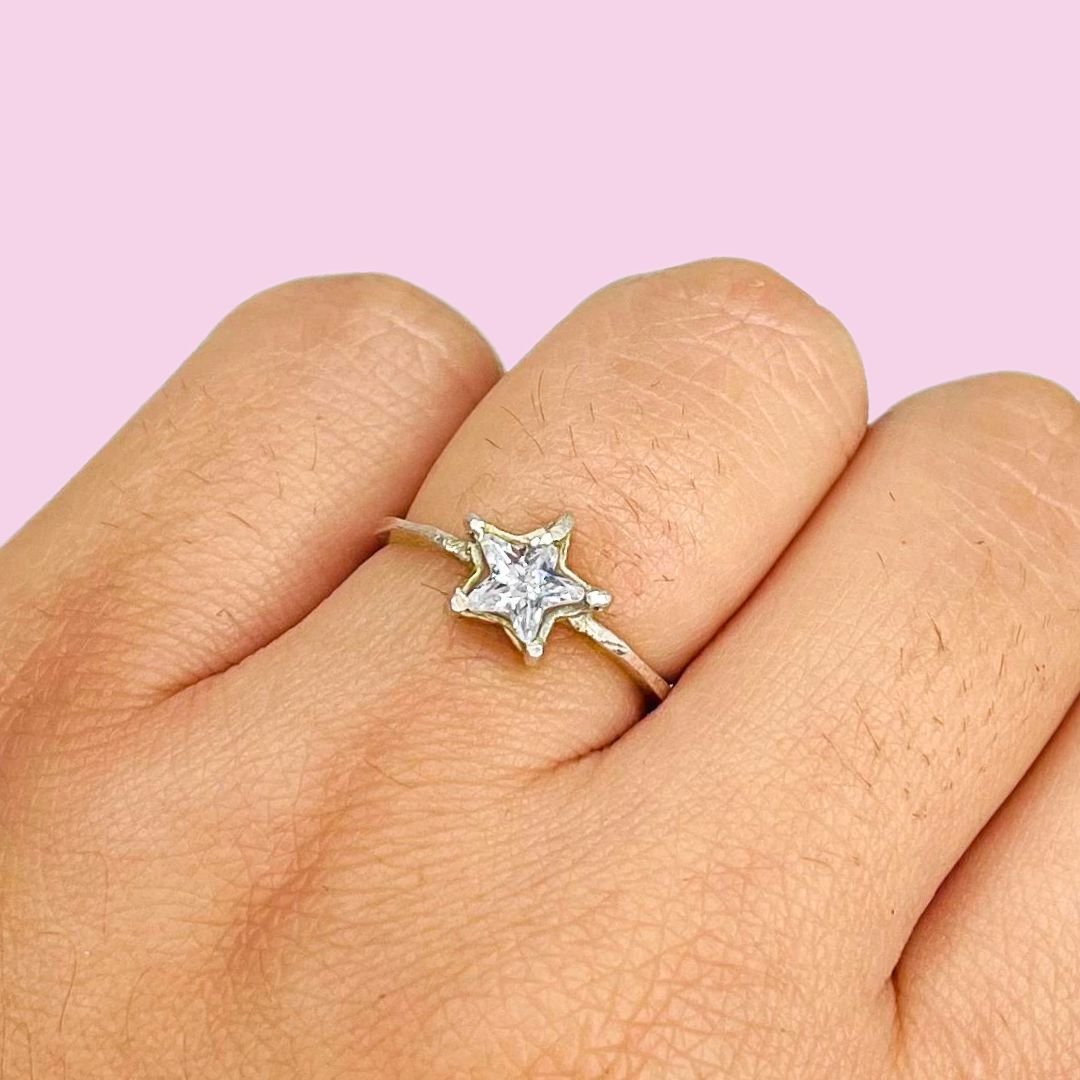 Anillo Estrella con Piedra Blanco de Plata 925