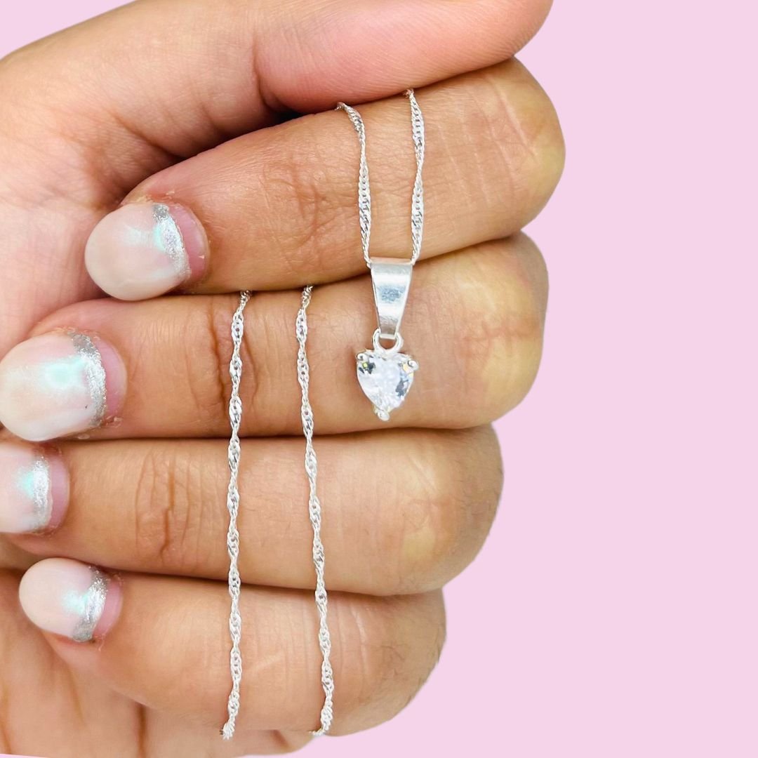 Artículo: KIT 324Conjunto Cadena con Corazon Blanco Plata 925